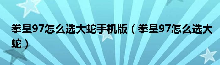 拳皇97怎么選大蛇手機版(拳皇97怎么選大蛇)