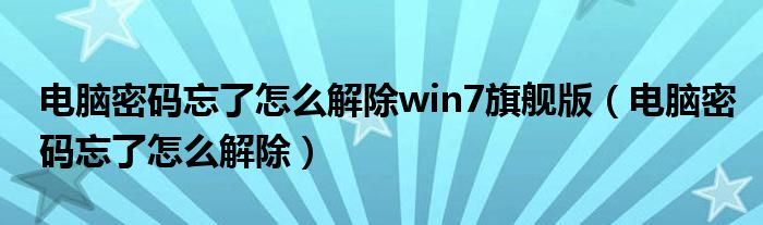 電腦密碼忘了怎么解除win7旗艦版(電腦密碼忘了怎么解除)