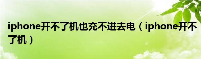 大家好,雨雨來為大家解答以上問題,iphone開不了機也充不進去電,iphone開不了機很多人還不知道,現(xiàn)在讓我們一起來看看吧!