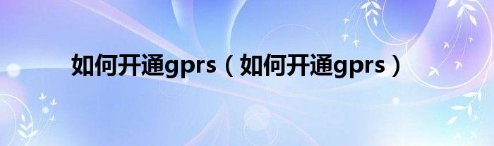 大家好,雨雨來為大家解答以上問題,如何開通gprs,如何開通gprs很多人還不知道,現(xiàn)在讓我們一起來看看吧!