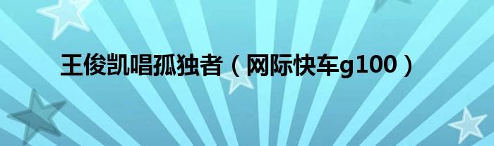 大家好,雨雨來為大家解答以上問題,王俊凱唱孤獨(dú)者,網(wǎng)際快車g100很多人還不知道,現(xiàn)在讓我們一起來看看吧!