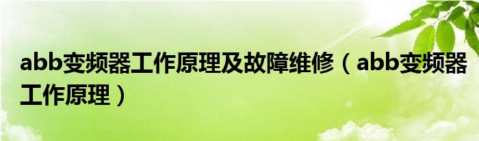 abb變頻器工作原理及故障維修(abb變頻器工作原理)