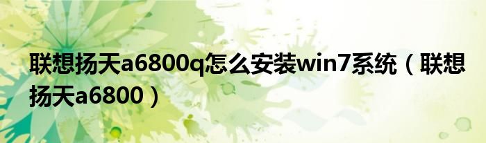聯(lián)想揚天a6800q怎么安裝win7系統(tǒng)(聯(lián)想揚天a6800)