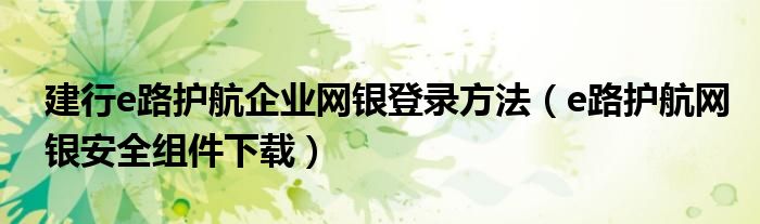 建行e路護航企業(yè)網(wǎng)銀登錄方法(e路護航網(wǎng)銀安全組件下載)