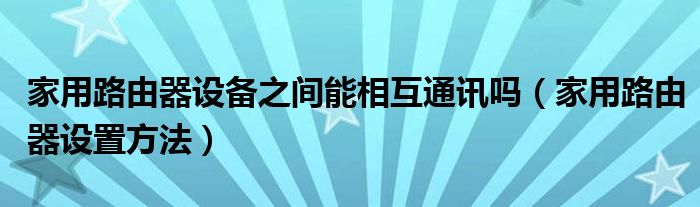 家用路由器設(shè)備之間能相互通訊嗎(家用路由器設(shè)置方法)