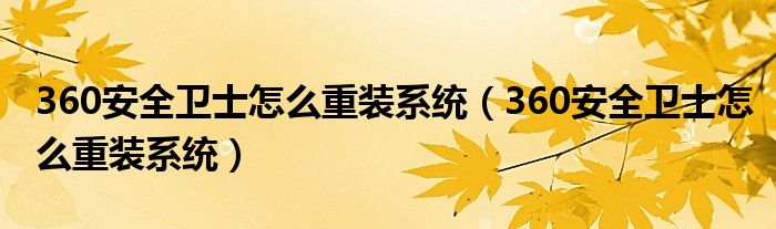 360安全衛(wèi)士怎么重裝系統(tǒng)(360安全衛(wèi)士怎么重裝系統(tǒng))
