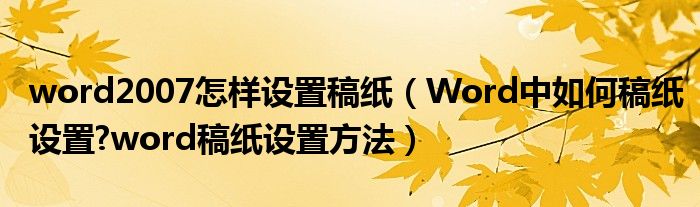 word2007怎樣設(shè)置稿紙(Word中如何稿紙?jiān)O(shè)置?word稿紙?jiān)O(shè)置方法)