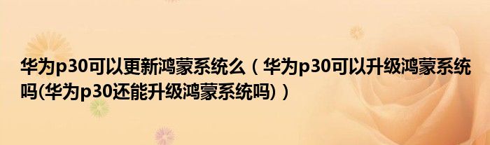 華為p30可以更新鴻蒙系統(tǒng)么(華為p30可以升級鴻蒙系統(tǒng)嗎(華為p30還能升級鴻蒙系統(tǒng)嗎))