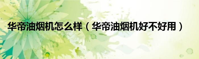 華帝油煙機(jī)怎么樣(華帝油煙機(jī)好不好用)