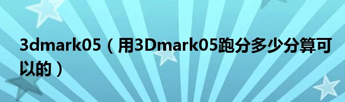 大家好,小常來(lái)為大家解答以上問(wèn)題。3dmark05,用3Dmark05跑分多少分算可以的很多人還不知道,現(xiàn)在讓我們一起來(lái)看看吧!