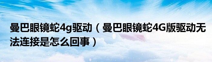 曼巴眼鏡蛇4g驅(qū)動(曼巴眼鏡蛇4G版驅(qū)動無法連接是怎么回事)