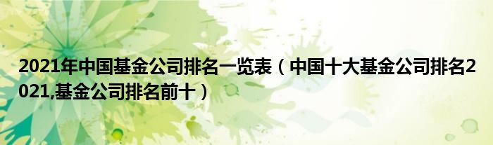 2021年中國基金公司排名一覽表(中國十大基金公司排名2021,基金公司排名前十)