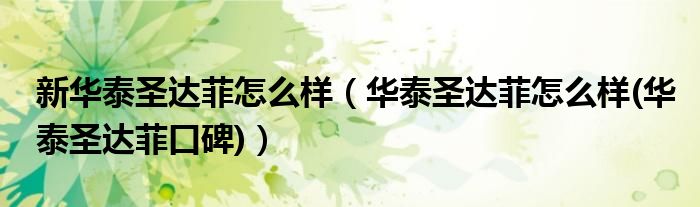 新華泰圣達(dá)菲怎么樣(華泰圣達(dá)菲怎么樣(華泰圣達(dá)菲口碑))