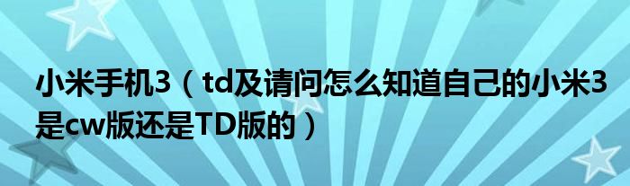 5,小米手機3(TD)是什么意思?:簡要地說:是代表網(wǎng)絡(luò)制式的英文縮寫,比如移動、聯(lián)通、電信等網(wǎng)絡(luò)運營商的網(wǎng)絡(luò)制式,TD代表的是移動通訊的一種制式。比如,CDMA也是通訊制式的一種。