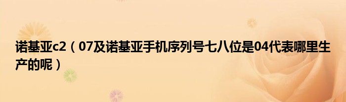 諾基亞c2(07及諾基亞手機(jī)序列號(hào)七八位是04代表哪里生產(chǎn)的呢)