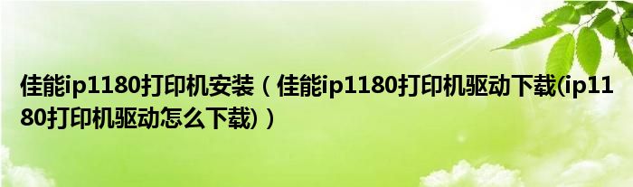 佳能ip1180打印機安裝(佳能ip1180打印機驅動下載(ip1180打印機驅動怎么下載))