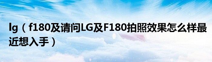 lg(f180及請問LG及F180拍照效果怎么樣最近想入手)