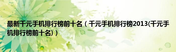 最新千元手機(jī)排行榜前十名(千元手機(jī)排行榜2013(千元手機(jī)排行榜前十名))