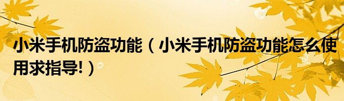 小米手機(jī)防盜功能(小米手機(jī)防盜功能怎么使用求指導(dǎo)!)