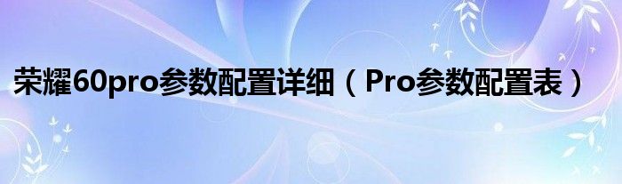 榮耀60pro參數(shù)配置詳細(xì)(Pro參數(shù)配置表)
