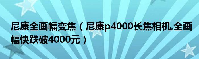 尼康全畫幅變焦(尼康p4000長焦相機(jī),全畫幅快跌破4000元)