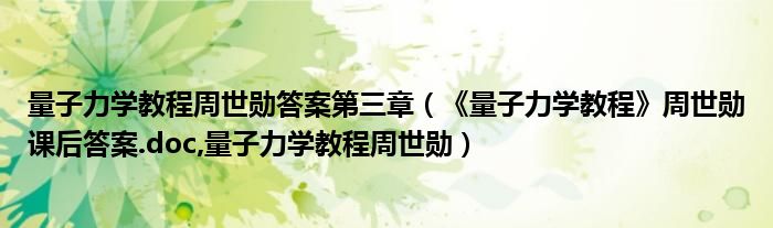 大家好,小常來為大家解答以上問題。量子力學(xué)教程周世勛答案第三章,《量子力學(xué)教程》周世勛課后答案.doc,量子力學(xué)教程周世勛很多人還不知道,現(xiàn)在讓我們一起來看看吧!