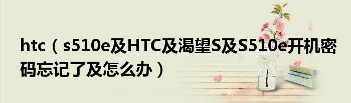 htc(s510e及HTC及渴望S及S510e開機密碼忘記了及怎么辦)