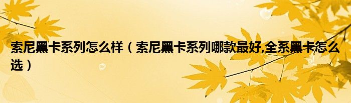索尼黑卡系列怎么樣(索尼黑卡系列哪款最好,全系黑卡怎么選)