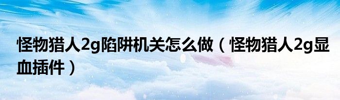 怪物獵人2g陷阱機(jī)關(guān)怎么做(怪物獵人2g顯血插件)