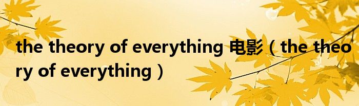 大家好,小飛來(lái)為大家解答以上的問(wèn)題。the theory of everything 電影,the theory of everything這個(gè)很多人還不知道,現(xiàn)在讓我們一起來(lái)看看吧!