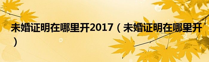 未婚證明在哪里開2017(未婚證明在哪里開)