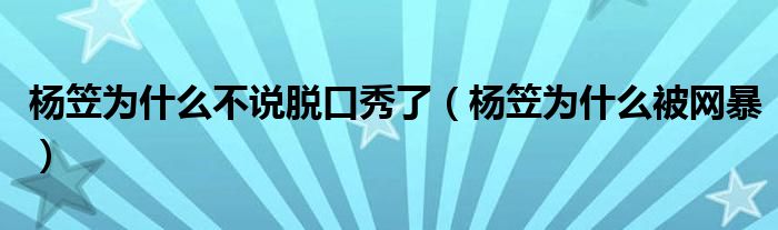 楊笠為什么不說脫口秀了(楊笠為什么被網(wǎng)暴)