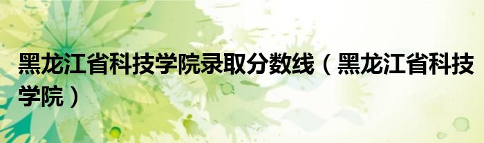 黑龍江省科技學(xué)院錄取分數(shù)線(黑龍江省科技學(xué)院)