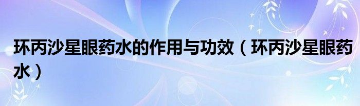 環(huán)丙沙星眼藥水的作用與功效(環(huán)丙沙星眼藥水)