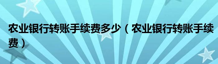 農(nóng)業(yè)銀行轉(zhuǎn)賬手續(xù)費多少(農(nóng)業(yè)銀行轉(zhuǎn)賬手續(xù)費)