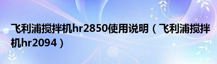 飛利浦?jǐn)嚢铏C(jī)hr2850使用說明(飛利浦?jǐn)嚢铏C(jī)hr2094)