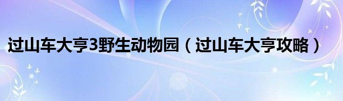 過(guò)山車大亨3野生動(dòng)物園(過(guò)山車大亨攻略)