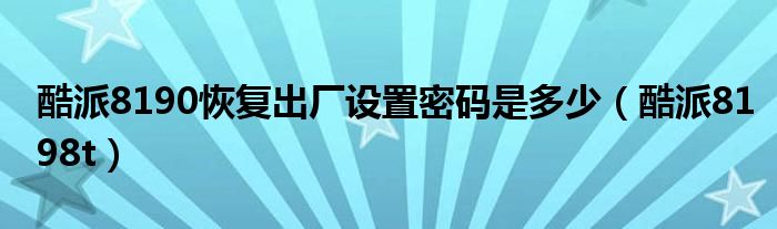 酷派8190恢復(fù)出廠設(shè)置密碼是多少,酷派8198t很多人還不知道,樂樂來為大家解答以上問題,現(xiàn)在讓我們一起來看看吧!