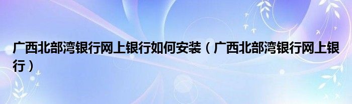 廣西北部灣銀行網(wǎng)上銀行如何安裝(廣西北部灣銀行網(wǎng)上銀行)