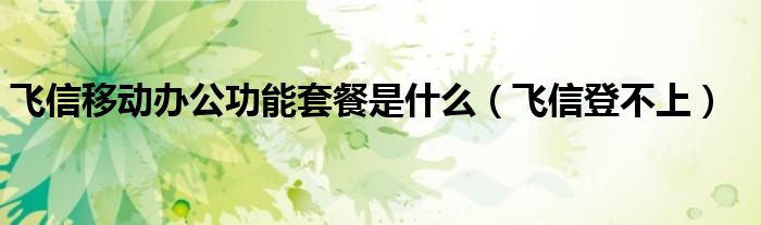 飛信移動(dòng)辦公功能套餐是什么(飛信登不上)