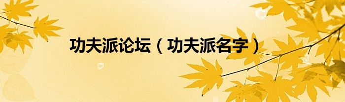 功夫派論壇(功夫派名字)