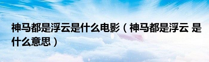神馬都是浮云是什么電影(神馬都是浮云 是什么意思)