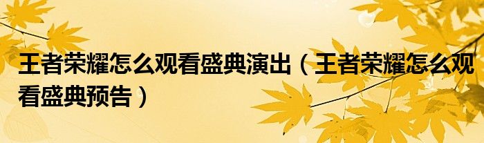 王者榮耀怎么觀看盛典演出(王者榮耀怎么觀看盛典預告)