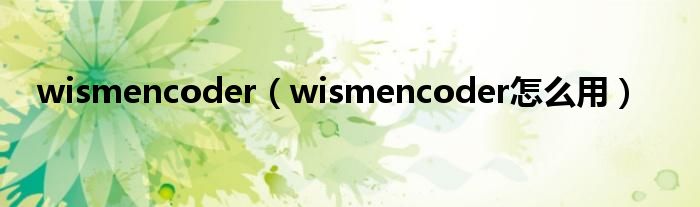wismencoder,wismencoder怎么用很多人還不知道,樂樂來為大家解答以上問題,現在讓我們一起來看看吧!