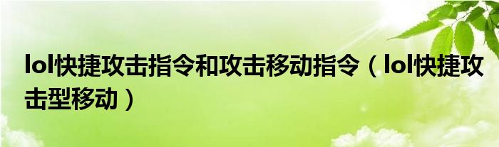 lol快捷攻擊指令和攻擊移動(dòng)指令(lol快捷攻擊型移動(dòng))