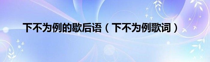 下不為例的歇后語,下不為例歌詞這個很多人還不知道,小飛來為大家解答以上的問題。現(xiàn)在讓我們一起來看看吧!