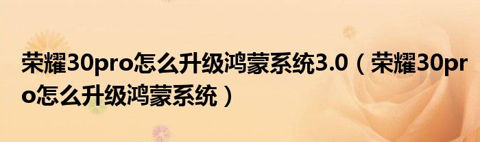 榮耀30pro怎么升級鴻蒙系統(tǒng)3.0(榮耀30pro怎么升級鴻蒙系統(tǒng))