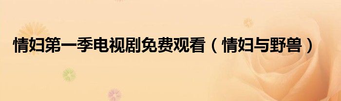 情婦第一季電視劇免費觀看(情婦與野獸)