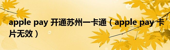 apple pay 開通蘇州一卡通(apple pay 卡片無(wú)效)