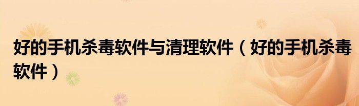 好的手機殺毒軟件與清理軟件(好的手機殺毒軟件)
